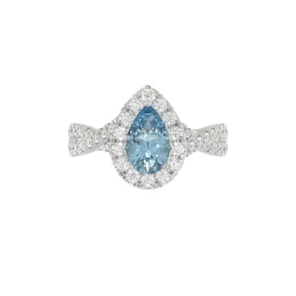 14K WHITE GOLD CRAFTED WITH 18K YELLOW GOLD SHANK 1 3/4CT ROUND/PEAR DIAMOND LADIES RING (CENTER STONE BLUE PEAR DIAMOND 1.00CT)