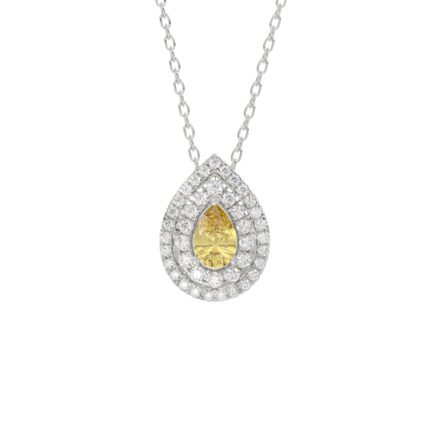 14K WHITE GOLD CRAFTED WITH 18K YELLOW GOLD BACK PLATE 2 1/2CT ROUND/YELLOW PEAR DIAMOND LADIES PENDANT WITH CHAIN