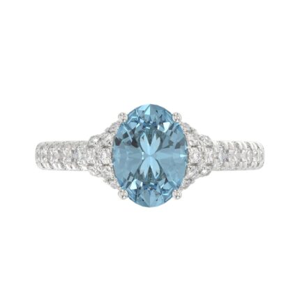 14K WHITE GOLD CRAFTED WITH 18K YELLOW GOLD SHANK 2 3/4CT ROUND/BLUE OVAL DIAMOND LADIES RING (CENTER STONE OVAL BLUE DIAMOND 2.00CT)