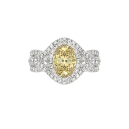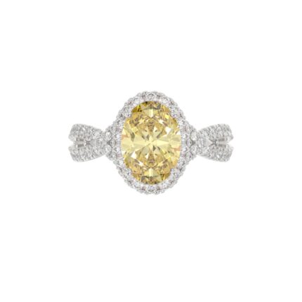 14K WHITE GOLD CRAFTED WITH 18K YELLOW GOLD SHANK 3 1/4CT ROUND/YELLOW OVAL DIMAOND LADIES RING (CENTER STONE YELLOW OVAL DIAMOND 2.00CT)