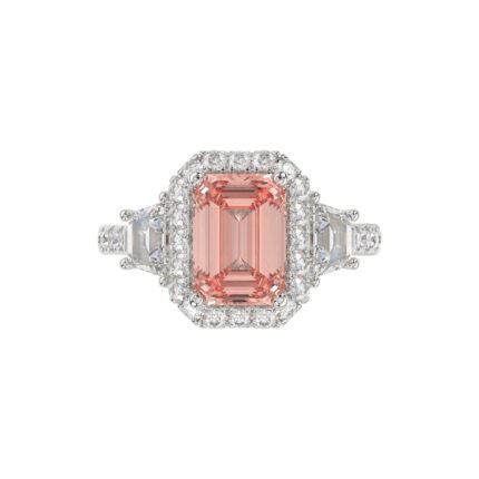 14K WHITE GOLD CRAFTED WITH 18K YELLOW GOLD SHANK 3.00CT ROUND/HALF MOON/EMERALD DIAMOND LADIES RING (CENTER STONE EMERALD PINK DIAMOND 2.00CT)