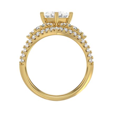 14K YELLOW GOLD 3 1/2CT ROUND/PEAR/EMERALD DIAMOND LADIES RING (CENTER STONE EMERALD DIAMOND 3CT)