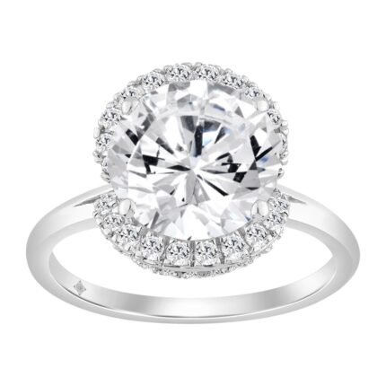 Ladies 3 1/2CT Round Lab Grown Diamond Halo Bridal Engagement Ring in 14K White Gold for Women (3.00CT Round Center stone (Color F-G -Clarity VS1/VS2)
