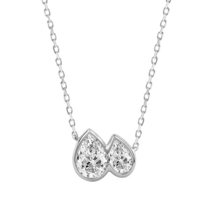 Elegance 3/4CT White Gold 10K Collection Linked Hearts Pear Diamond Ladies Necklace for Women (Color F-G -Clarity VS1/VS2)