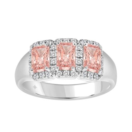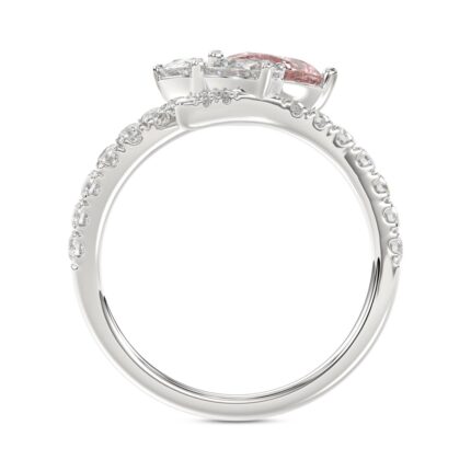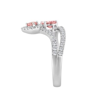 ETERNAL BLUSH COLLECTION 14K WHITE GOLD 1.00CT PINK ROUND /PEAR DIAMOND & OVAL DIAMOND LADIES RING