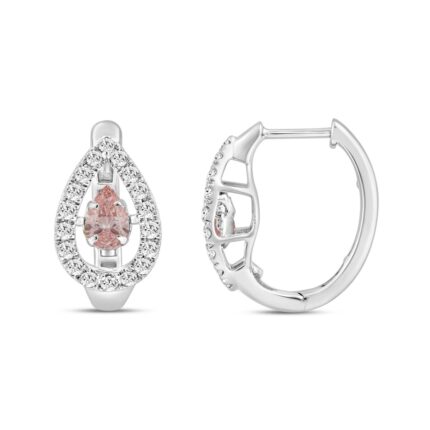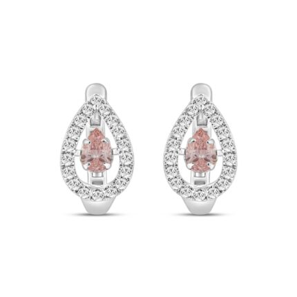 ETERNAL BLUSH COLLECTION 14K WHITE GOLD 1.00CT ROUND/ PINK PEAR DIAMOND LADIES HOOPS EARRING