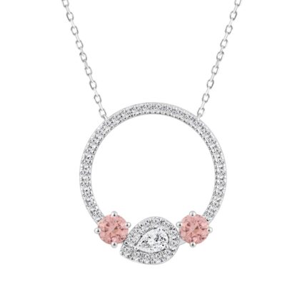 ETERNAL BLUSH COLLECTION 14K WHITE GOLD 1.00CT ROUND/ PINK PEAR & ROUND DIAMOND LADIES PENDANT WITH CHAIN