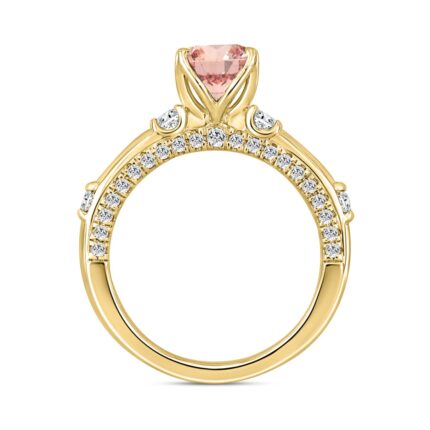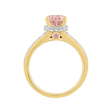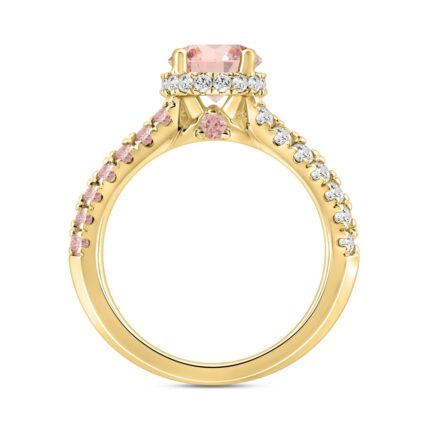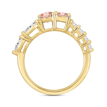 ETERNAL BLUSH COLLECTION LADIES RING 2 1/4CT ROUND & PEAR DIAMOND / PINK OVAL DIAMOND 14K YELLOW GOLD