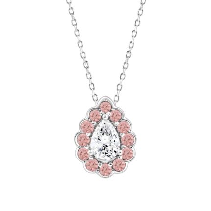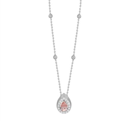 ETERNAL BLUSH COLLECTION LADIES NECKLACE 3/4CT ROUND/PEAR DIAMOND 14K WHITE GOLD (CENTER STONE PINK PEAR DIAMOND 1/2CT)