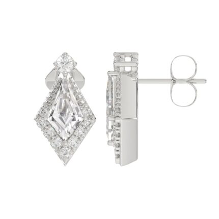 14K WHITE GOLD 1 1/4CT ROUND/KITE STEP CUT DIAMOND LADIES EARRINGS