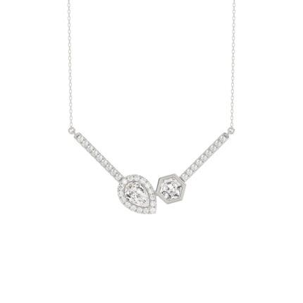 14K WHITE GOLD 1 1/4CT ROUND/PEAR/HEXAGON DIAMOND LADIES NECKLACE