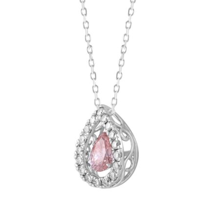 LADIES PENDANT WITH CHAIN 3/4CT ROUND/PEAR DIAMOND 14K WHITE GOLD (CENTER STONE PINK PEAR DIAMOND 1/2CT)