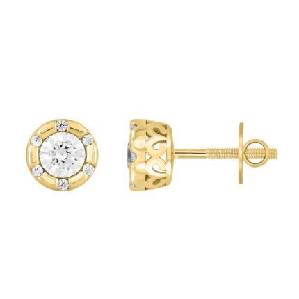 14K YELLOW GOLD 3/4CT ROUND DIAMOND LADIES EARRINGS