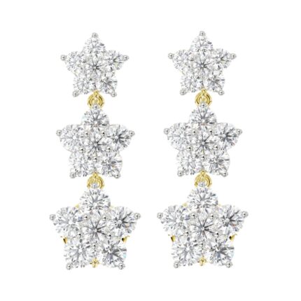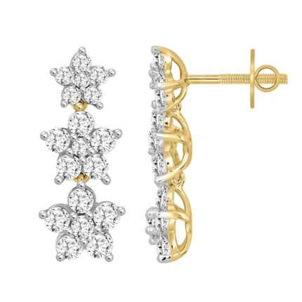 14K YELLOW GOLD 3CT ROUND DIAMOND LADIES LINEAR EARRINGS