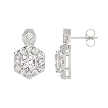 14KWHITE GOLD 2 1/4CT ROUND/HEXAGON STEP CUT DIAMOND LADIES EARRINGS