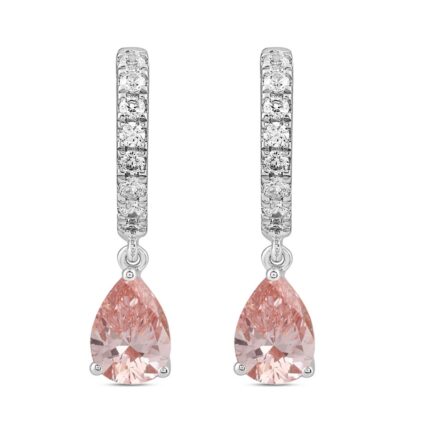 ETERNAL BLUSH COLLECTION LADIES HOOPS EARRINGS 2CT ROUND/PEAR DIAMOND 14K WHITE GOLD (CENTER STONE PINK PEAR DIAMOND 3/4CT)