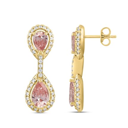 ETERNAL BLUSH COLLECTION LADIES EARRINGS 3 3/4CT ROUND/PEAR DIAMOND 14K YELLOW GOLD (CENTER STONE PINK PEAR DIAMOND 2CT)