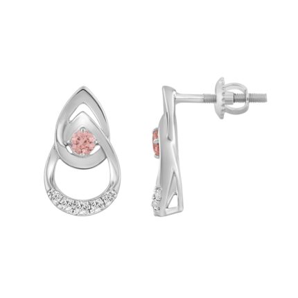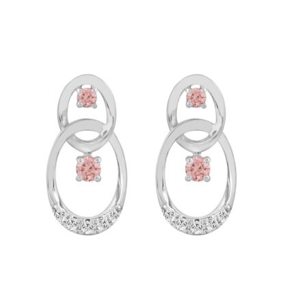 ETERNAL BLUSH COLLECTION LADIES EARRINGS 1/3CT ROUND DIAMOND 14K WHITE GOLD (CENTER STONE PINK ROUND DIAMOND 1/5CT)