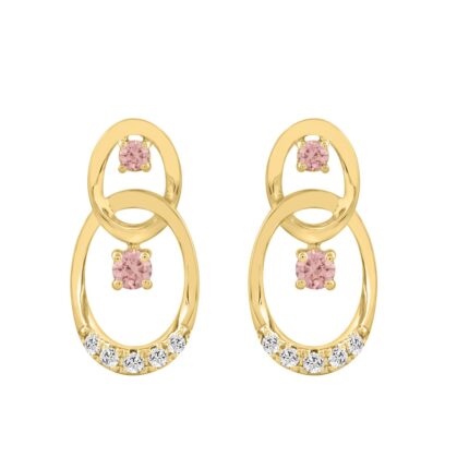 ETERNAL BLUSH COLLECTION LADIES EARRINGS 1/3CT ROUND DIAMOND 14K YELLOW GOLD (CENTER STONE PINK ROUND DIAMOND 1/5CT)