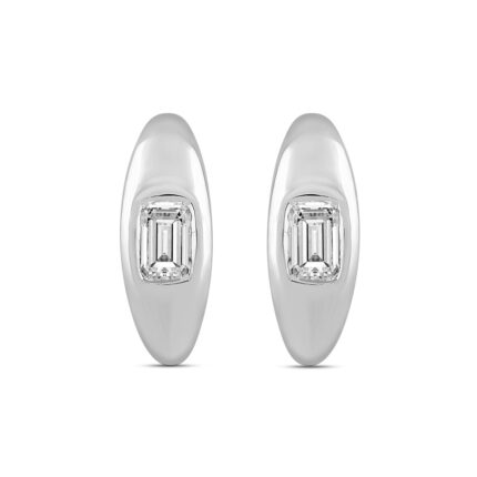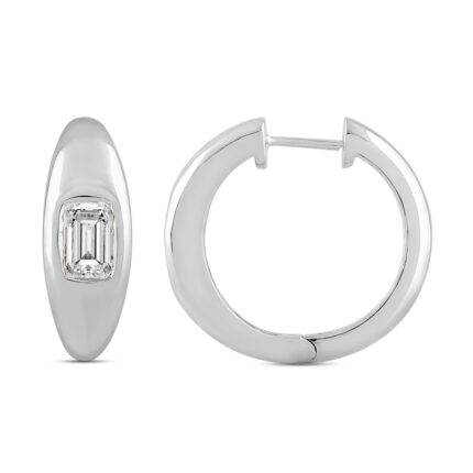 LADIES HOOP EARRINGS 2CT EMERALD DIAMOND 14K WHITE GOLD