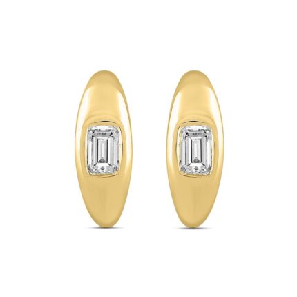 LADIES HOOP EARRINGS 2CT EMERALD DIAMOND 14K YELLOW GOLD