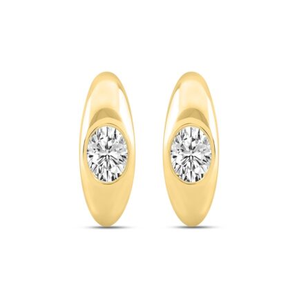LADIES HOOP EARRINGS 0.25CT ROUND DIAMOND 10K YELLOW GOLD