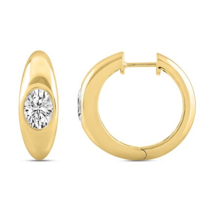 LADIES HOOP EARRINGS 2CT OVAL DIAMOND 14K YELLOW GOLD