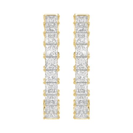 LADIES HOOP EARRINGS 5CT PRINCESS DIAMOND 14K YELLOW GOLD