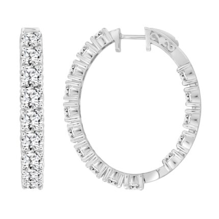LADIES HOOP EARRINGS 7CT ROUND DIAMOND 14K WHITE GOLD