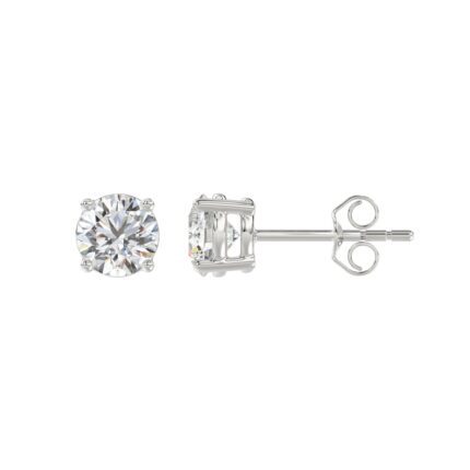 LADIES SOLITAIRE EARRINGS 1.00CT ROUND DIAMOND 18K WHITE GOLD