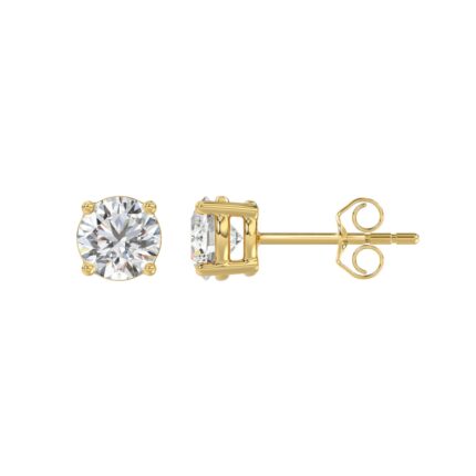 LADIES SOLITAIRE EARRINGS 1.50CT ROUND DIAMOND 14k YELLOW GOLD