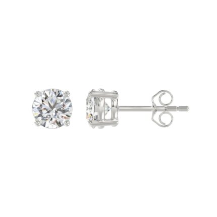 LADIES SOLITAIRE EARRINGS 1.50CT ROUND DIAMOND 14K WHITE GOLD