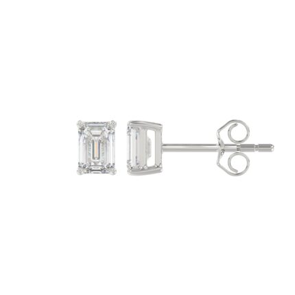 LADIES SOLITAIRE EARRINGS 1/2CT EMERALD DIAMOND 14K WHITE GOLD
