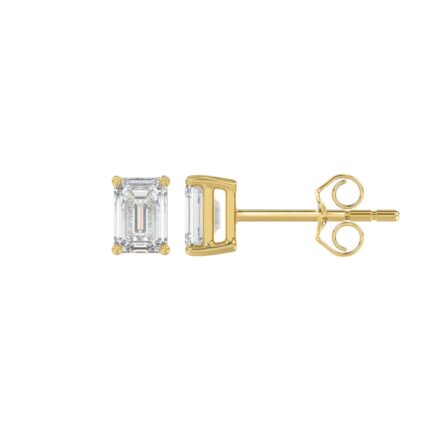 LADIES SOLITAIRE EARRINGS 1/2CT EMERALD DIAMOND 14K YELLOW GOLD