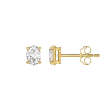 LADIES SOLITAIRE EARRINGS 1/2CT OVAL DIAMOND 14K YELLOW GOLD (CENTER STONE OVAL DIAMOND 1/4CT )