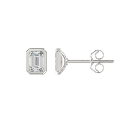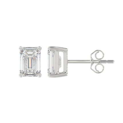 LADIES SOLITAIRE EARRINGS 2CT EMERALD DIAMOND 14K WHITE GOLD