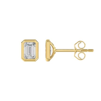 LADIES SOLITAIRE EARRINGS 2CT EMERALD DIAMOND 14K YELLOW GOLD