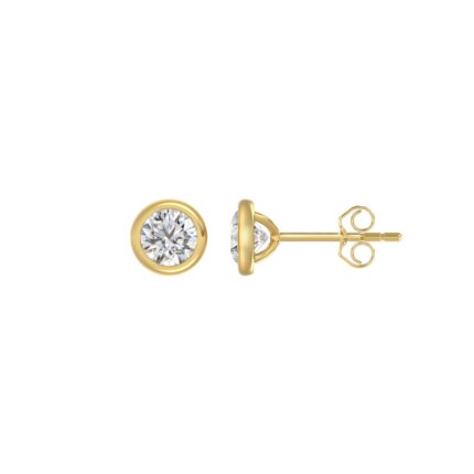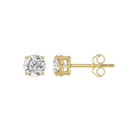 LADIES SOLITAIRE EARRINGS 1CT ROUND DIAMOND 14K YELLOW GOLD