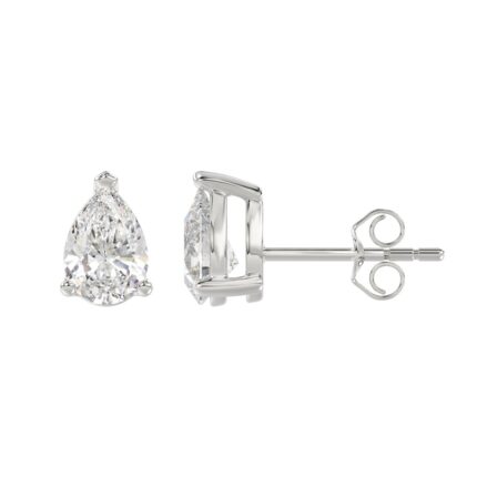 LADIES SOLITAIRE EARRINGS 2CT PEAR DIAMOND 14K WHITE GOLD