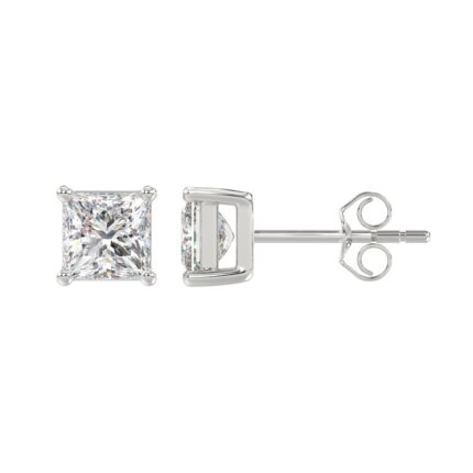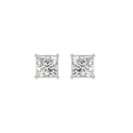 LADIES SOLITAIRE EARRINGS 2CT PRINCESS DIAMOND 14K WHITE GOLD