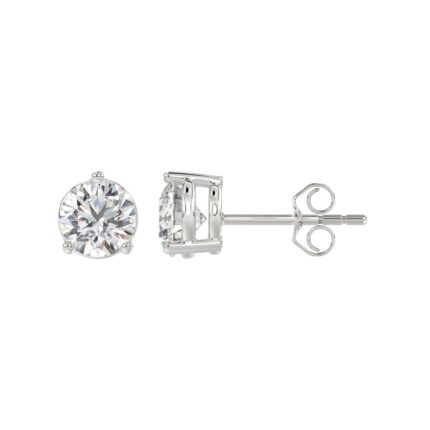 LADIES SOLITAIRE EARRINGS 2 1/2CT ROUND DIAMOND 14K WHITE GOLD