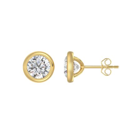 LADIES SOLITAIRE EARRINGS 3CT ROUND DIAMOND 14K YELLOW GOLD (CENTER STONE ROUND DIAMOND 1 1/2CT)