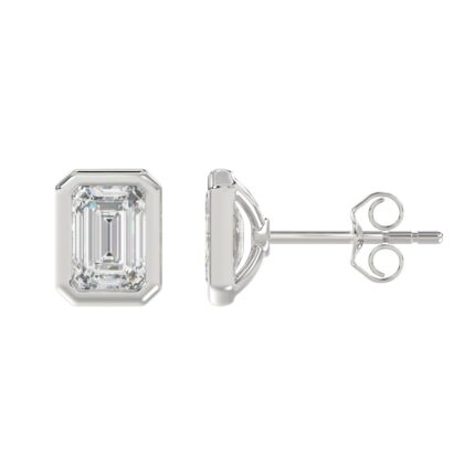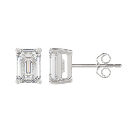 LADIES SOLITAIRE EARRINGS 4.00CT EMERALD DIAMOND 14K WHITE GOLD