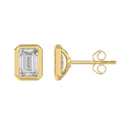 LADIES SOLITAIRE EARRINGS 4.00CT EMERALD DIAMOND 14K YELLOW GOLD