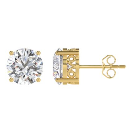 LADIES SOLITAIRE EARRINGS 6CT ROUND DIAMOND 14K YELLOW GOLD