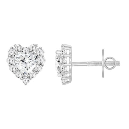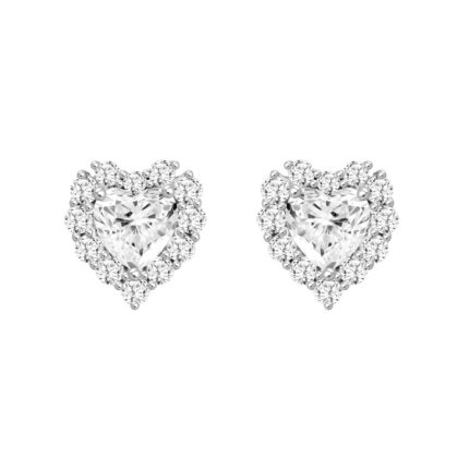 LADIES STUD EARRINGS 3CT HEART/ROUND DIAMOND 14K WHITE GOLD (CENTER STONE HEART DIAMOND 2CT )