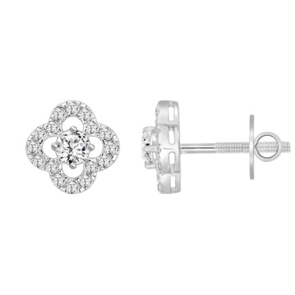 LADIES STUD EARRINGS 1CT ROUND DIAMOND 14K WHITE GOLD