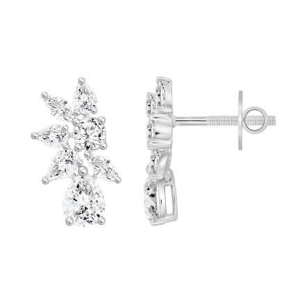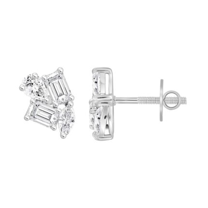 LADIES STUD EARRINGS 3CT PEAR/ROUND/MARQUISE DIAMOND 14K WHITE GOLD