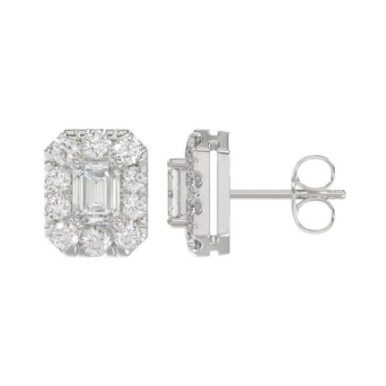 LADIES STUD EARRINGS 1CT EMERALD/ROUND DIAMOND 14K WHITE GOLD
