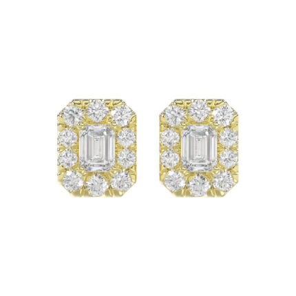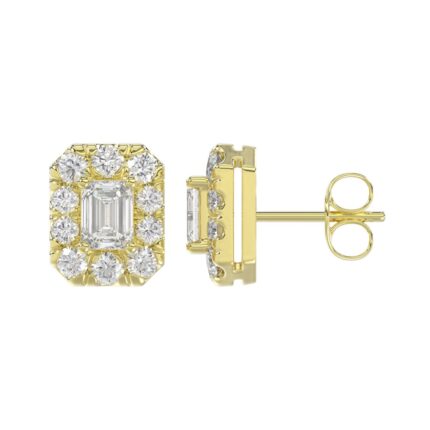 LADIES STUD EARRINGS 1CT EMERALD/ROUND DIAMOND 14K YELLOW GOLD